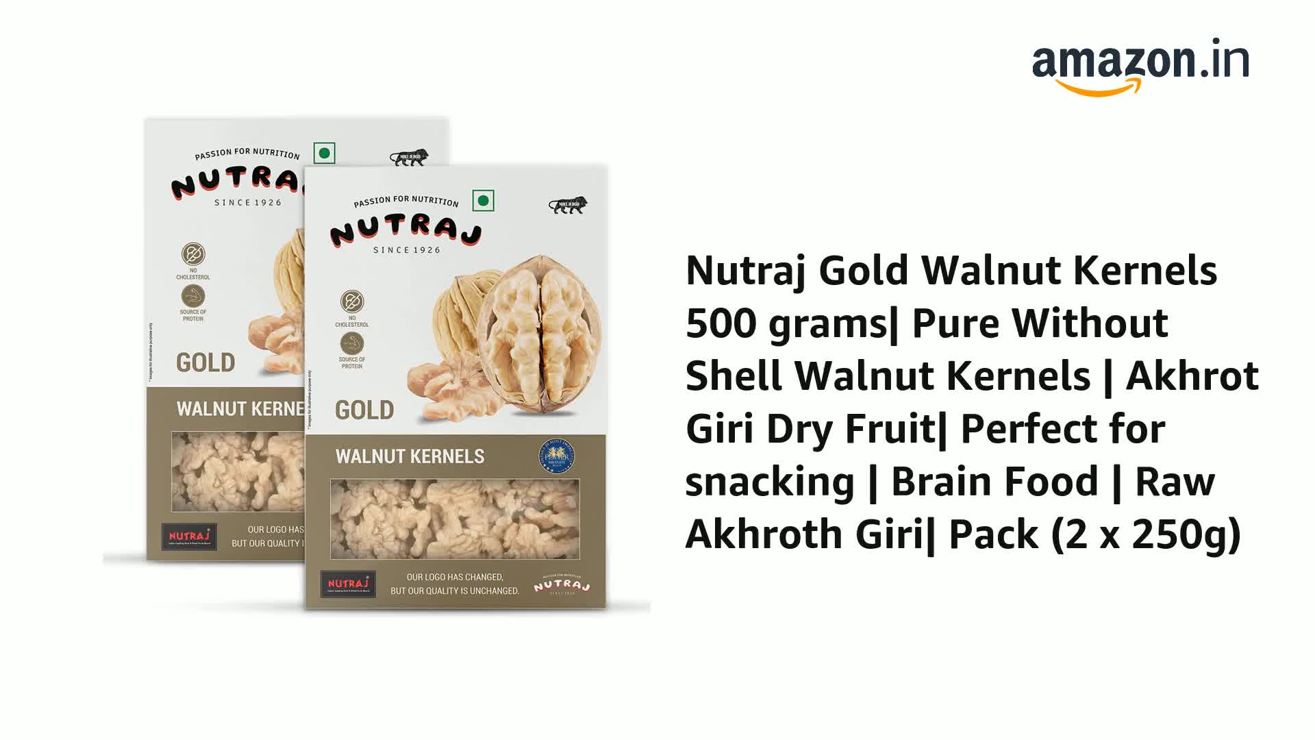 Nutraj Gold Walnut Kernels 500gm (250gm x 2) Pack Without Shell | Akhrot Giri | Dry Fruits and Nuts | Grocery Items.
