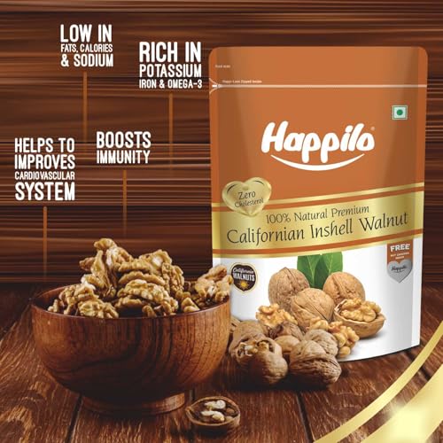 Walnuts are deliciously healthy and great for snacking baking or cooking. These in shell raw walnut halves are mainly grown in California and northern India. Eating raw walnuts is one of the easiest things to do to improve your health.Happily has travelled the world to get the finest gourmet dry fruits dried fruits nuts berries and dates. Indulge into the gourmet and grocery world of Happily with awesome nuts and dry fruits along with the unique dry fruit mixes fusions and flavoured dry fruits healthy seeds and dried berries specially crafted for your taste and health. Happilo dry fruit gift boxes and festive dry fruits and nuts gift pack brings health happiness and love to gift to your colleagues friends and family. We bring you the taste and health together in single pack in the finest of packing packed in an art of the state facility certified by all majors like fssai iso. Every Happily pack is a perfect dry fruits gift for every festive occasion.