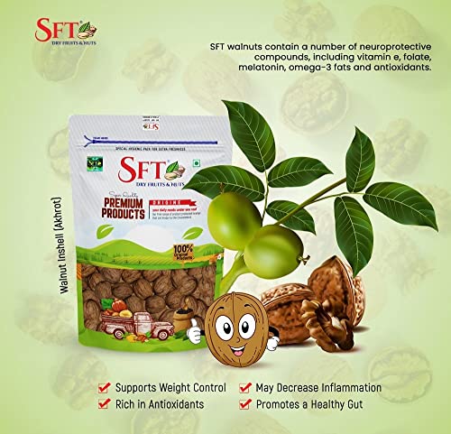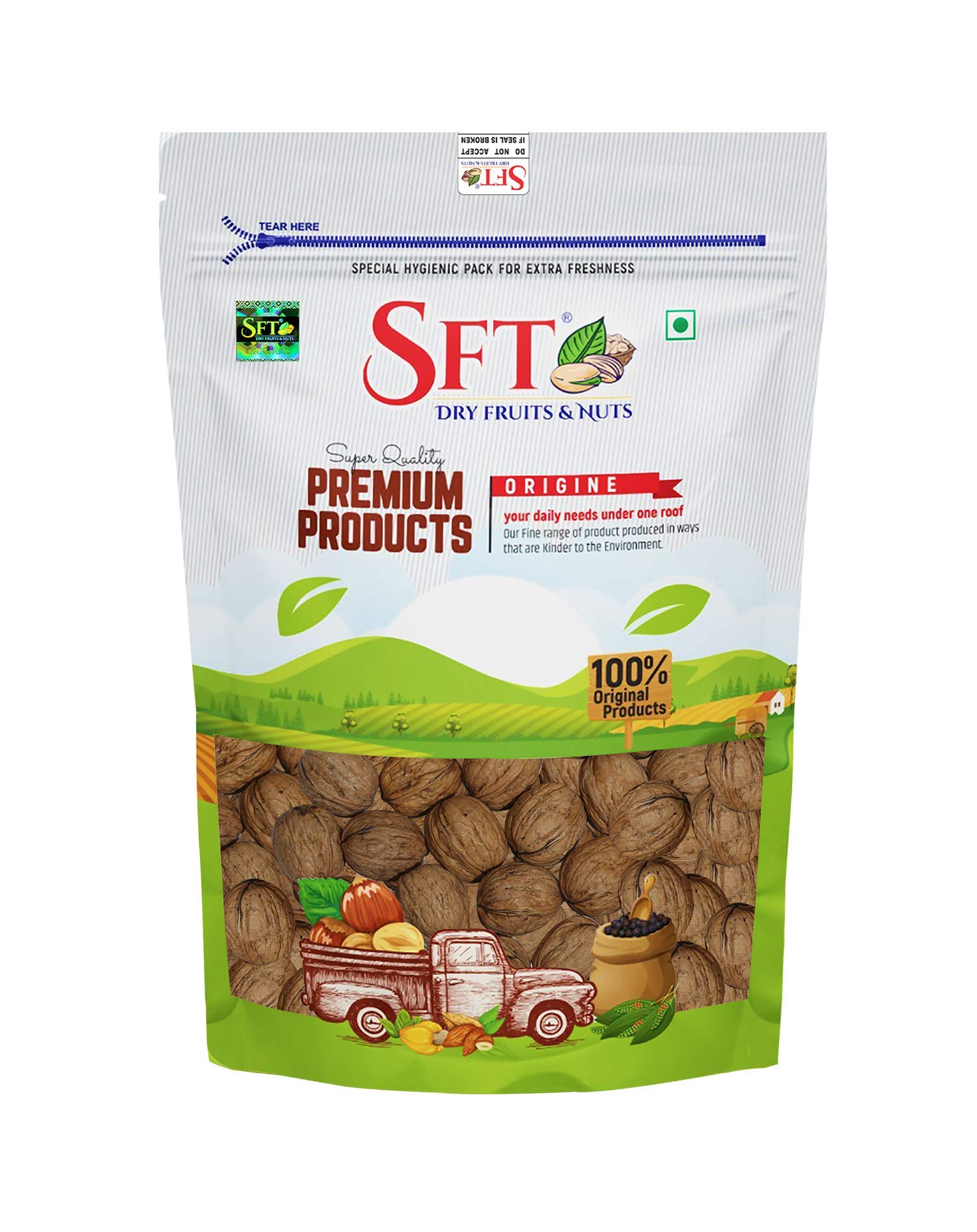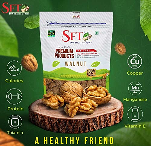 SFT believes that our reputation must be based on the quality of our products. We have travelled across the country to handpick the quality products at the best possible rates. SFT have been in the market for the past 22 years and we have tied up with all major offline retail majors. Our products are subjected to rigorous quality control procedures throughout the procurement and packaging processes. It is our constant endeavor to provide widest possible range to consumer and now have an ever expanding range of selections across dry fruits spices and nuts. We maintain great taste and guaranteed quality throughout the year and our products are sure to be your new favourites after your first purchase. SFT walnuts contain a number of neuroprotective compounds including vitamin e folate melatonin omega-3 fats and antioxidants. Research shows walnut consumption may support brain health including increasing inferential reasoning in young adults.
