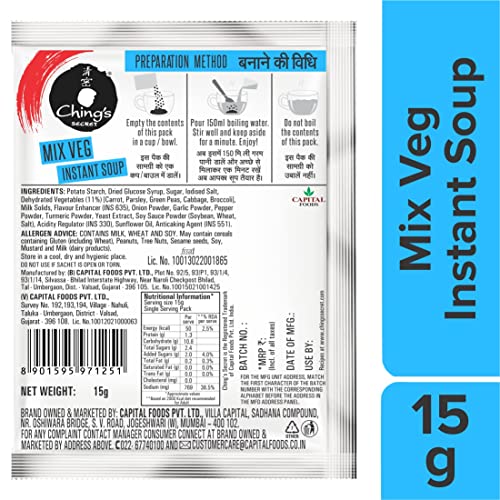 Ching's Instant Mix Veg Soup 15 gm (Pack of 5)