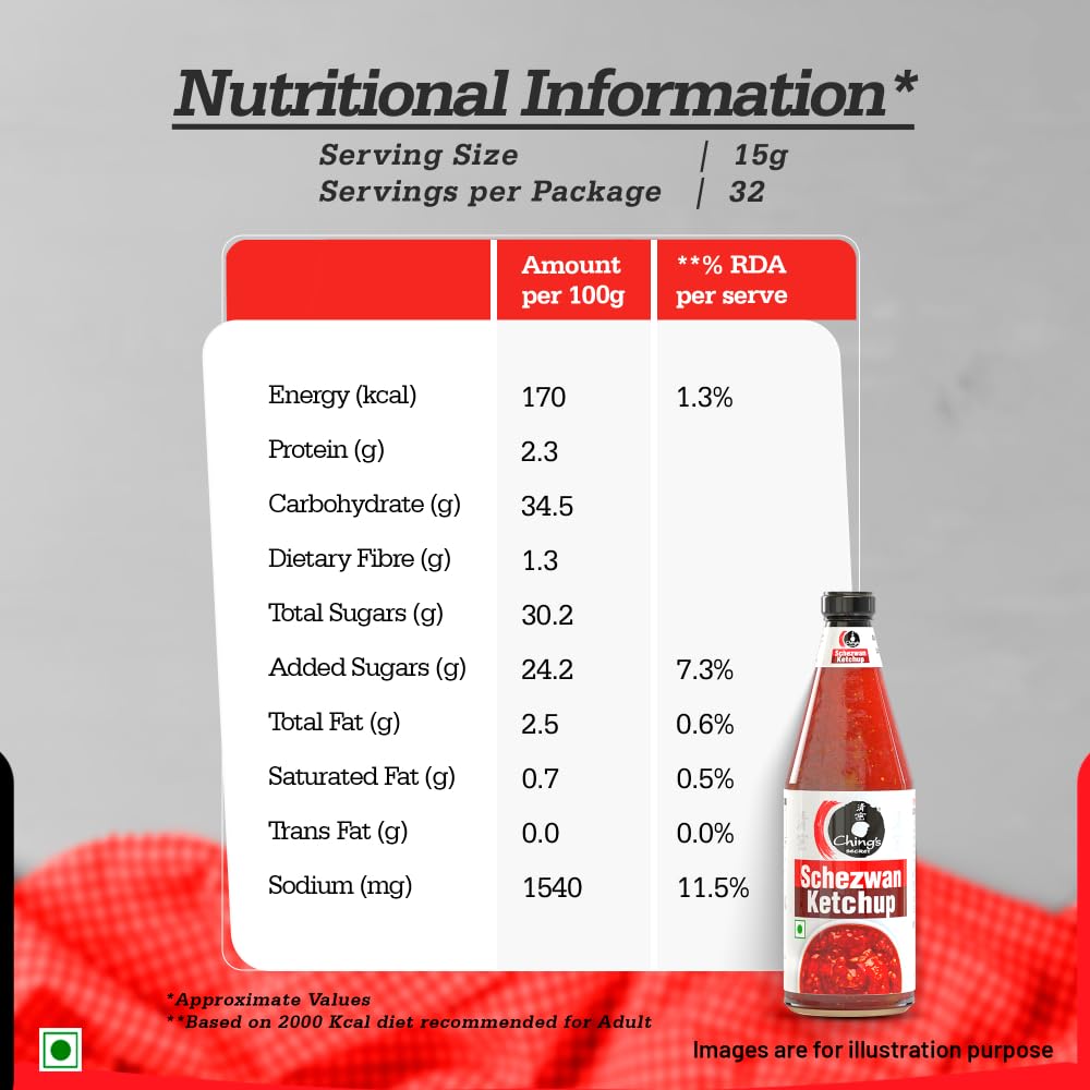 Experience the fiery fusion of Desi Chinese cuisine with Ching's Schezwan Ketchup perfect for spring rolls noodles and fried rice. Infused with authentic desi Schezwan and tomato ketchup flavours it delivers a mouth-watering burst of hot-sweet-spicy-tangy goodness with every dip. Crafted with high quality ingredients for exceptional taste and quality this versatile sauce effortlessly complements vegetables meat seafood and rice. Spice up your cooking with Ching's Schezwan Ketchup the ultimate choice for bold and authentic Desi Chinese flavours.