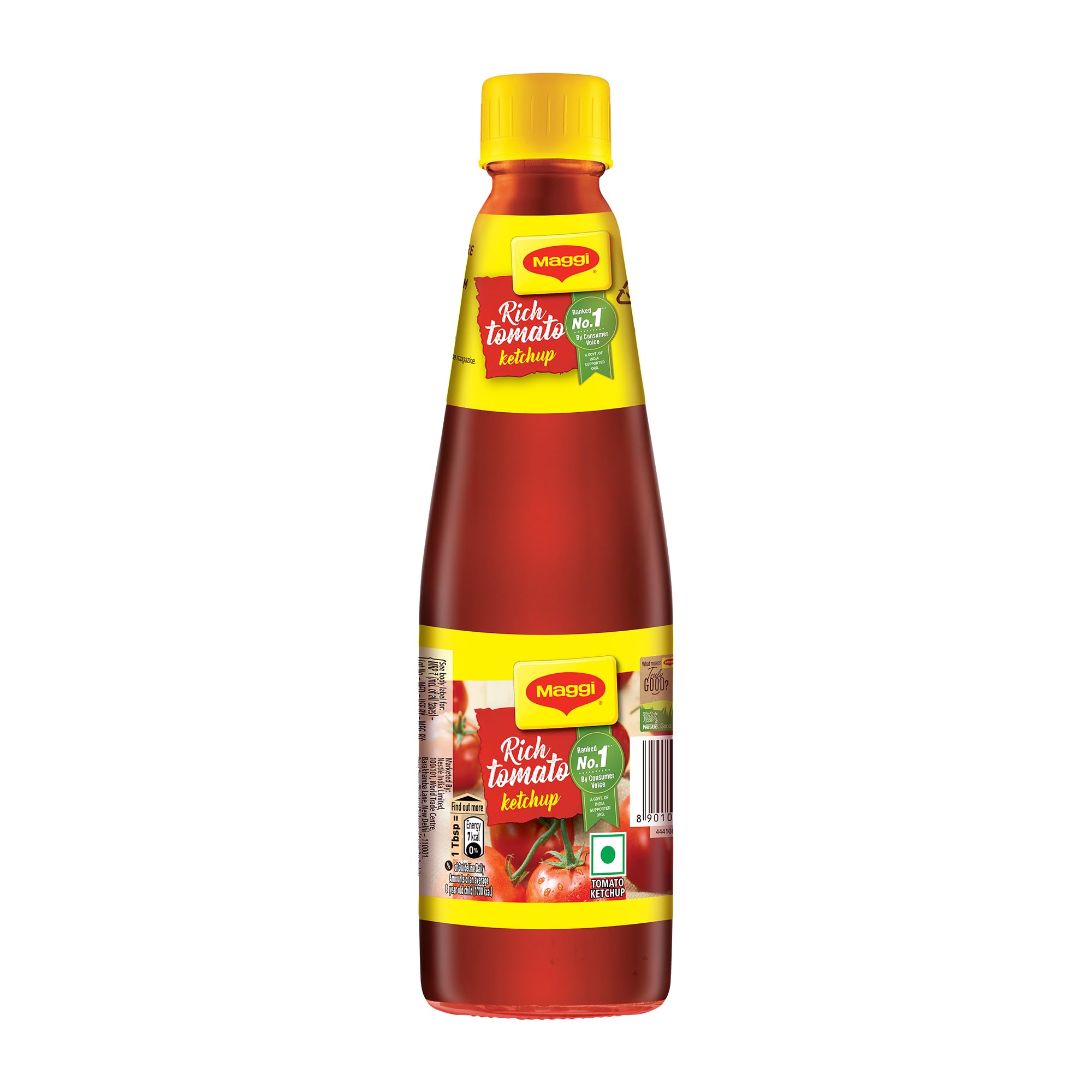 Maggi's delicious rich Tomato Ketchup adds a tang to any dish with its unique taste. The hero to your snacks and the best accompaniment to a boring meal. Maggi rih tomato Ketchup assure everything from samosas noodles pakodas to plain chapatis is perfect and yummy. Maggi Tomato Ketchup is made with tomatoes and a combination of spices to create a truly lip-smacking flavour that everyone loves. Great with snacks like burgers fries pizza pasta and more.
