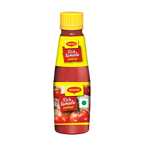 Nestle brings to you Maggi Rich Tomato Ketchup to add a delicious tang to your favourite dishes. The unique taste of this tomato ketchup makes for a sweet and tangy flavour. The hero to your snacks and the best accompaniment to a boring meal Nestle Maggi Ketchup goes well with everything from samosas noodles to pakodas and plain chapatis. This Maggi tomato sauce is made with real tomatoes and a combination of spices to create a truly lip-smacking flavour that everyone loves. Great with snacks like burgers fries pizza pasta and more Nestle ketchup is fresh and healthy. Serving Instructions: The easy to use glass bottle allows easy pour and serve and keeps the sauce fresh so it can be enjoyed anytime. Storage Instruction: Store in a cool dry and hygienic place. Keep neck clean and close the cap immediately after use. Allergens: May contain cashew nuts and milk solids.
