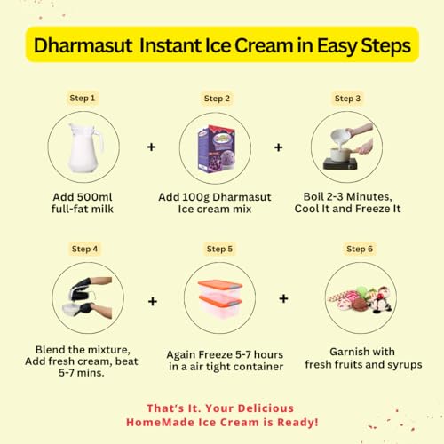 Direction for Making Delicious Ice Cream at Home Set the freezer temperature at a high 1/2 hour before preparing the mixture of Ice-cream. Add "Dharmasut Ice cream mix Powder" to 1/2 liter full-fat milk. Keep to boil and stir for 2-3 minutes till the mixt