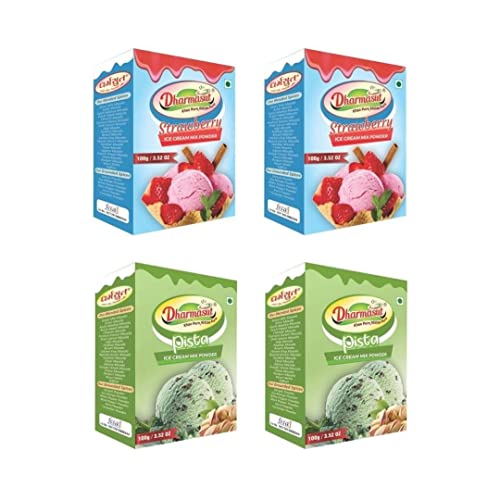 Dharmasut 2 Strawberry + 2 Pista Ice Cream Premix Powder|Combo Of 4|400Gm