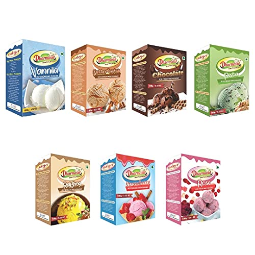 Make all flavour of ice cream at home by Dharmasut ice cream powder. This combo includes seven different flavours of ice cream powder Vanilla Ice Cream Powder + ButterScotch Ice Cream Powder + Chocolate Ice Cream Powder + Pista Ice Cream Powder + Rajbhog Ice Cream Powder + Strawberry Ice Cream Powder + Rose IceCream Powder.