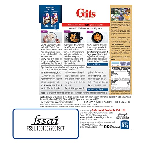 Jalebi is a very popular and a much-loved Indian sweet dish that can be had both as a dessert and a quick snack. Crispy saffron-coloured Jalebis are made out of fermented wheat and lentil dipped in sugar syrup and consumed either hot or cold. The Gits Jalebi Dessert Mix with easy maker bottle is an instant solution to your dessert plans after family meals. The cooking process is made simple with a single mix which can be used to prepare the batter for your Jalebis. Also replace the traditional Jalebi cloth with the easy-to-use cone bottle that comes in the pack and shape your Jalebi pieces like a professional! You can even make baby Jalebis for your little ones with this instant mix. Jalebis are usually served along with a generous portion of flavoured and condensed milk - chilled Gits Rabdi and the combo tastes like heaven. Gits dessert ready mixes are made using the finest ingredients and with the suggested recipes you can make fantastic homemade Indian mithais. A 3-generation family-owned business Gits can help you make perfect delicious and flavour-filled Indian sweets and savouries.