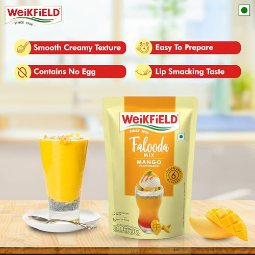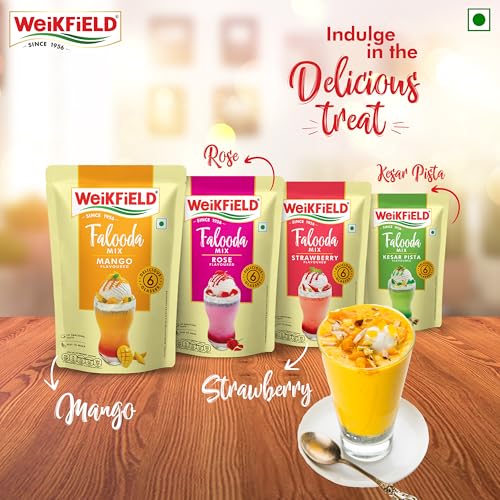 Making mango flavoured Falooda at home has never been made so easy now by using Weikfield's Mango Falooda mix. All that you need to do is to add the mix to milk and chill to prepare a delicious Mango Falooda dessert at home. Weikfield's Falooda Mixes are available in four mouth-watering flavours of Mango Rose Strawberry and Kesar Pista.
