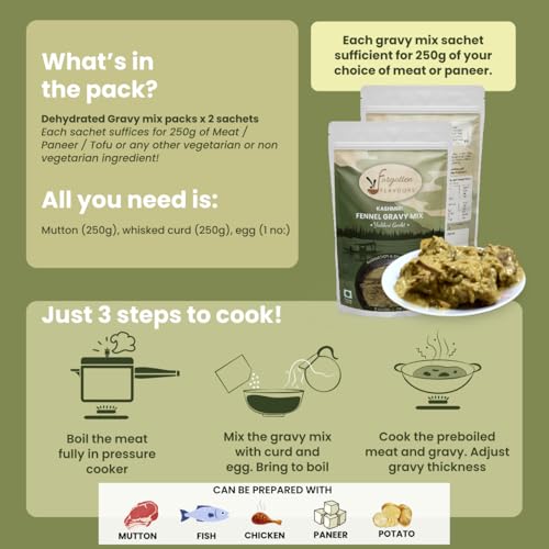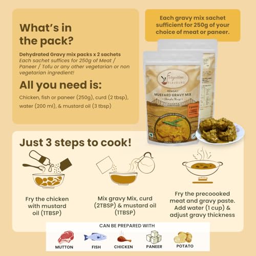 Shorshe means Surson (Mustard) in Bengali. Th Shorshe Murgi (Mustard based chicken) is a lesser know dish of Bengal. While the fish counterpart is very famous the murgi (chicken) relatively lesser known. The dish is unique mix of mustard complimented with a slight whiff of coconut milk and other spices.The packet contains a flavouring mix and gravy mix. Enjoy the unparalleled flavours of Bengal with this quintessential dish!Yakhni Gosht is a popular dish of Kashmir and a essential part of the Kashmiri Wazwan. Enjoy the flavourful mutton preparation. The Yakhni Gosth is a fennel based preparation and contains the aromatic flavours of cinnamon fennel cardamom & mint blended together in the base of fresh curd.