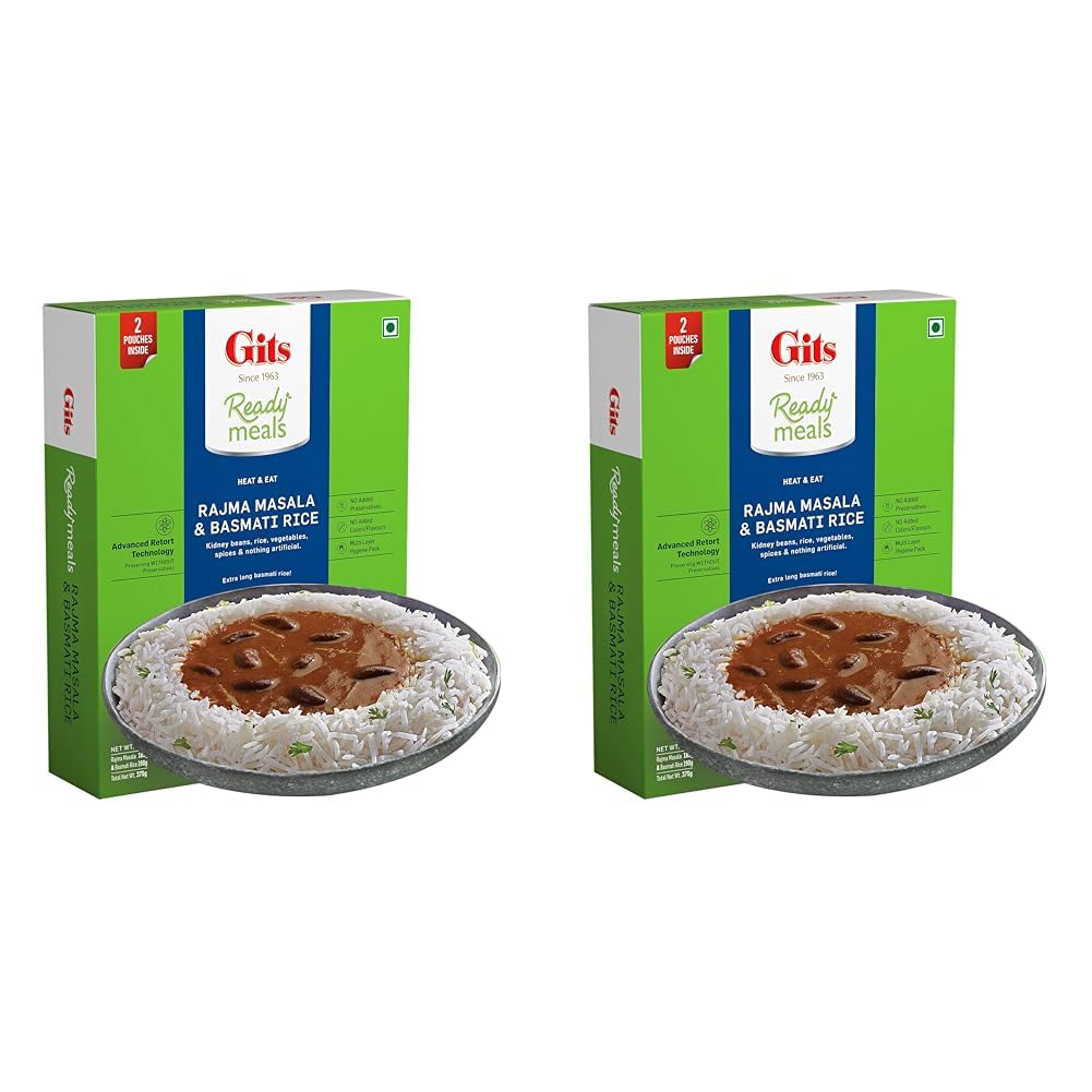 Gits Ready to Eat Basmati Rice & Rajma Masala Combo Meal, Pure Veg, Heat and Eat, 375g (Pack of 2)