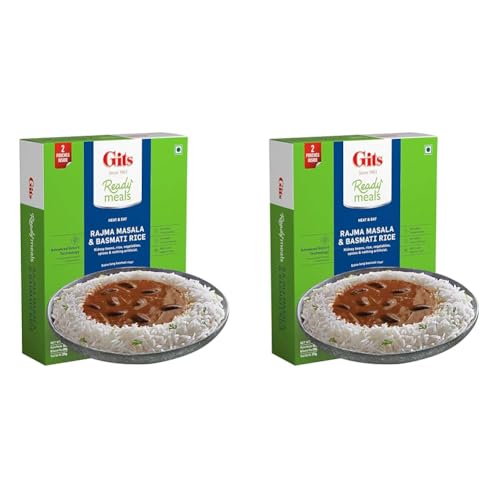 Gits Ready to Eat Basmati Rice & Rajma Masala Combo Meal Pure Veg Heat and Eat 375g (Pack of 2)