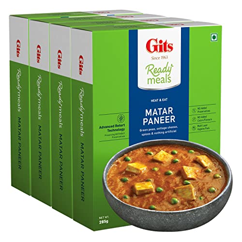 Gits Ready to Eat Matar Paneer, Pure Veg, Heat and Eat, Microwaveable 1140g (Pack of 4 X 285g Each)