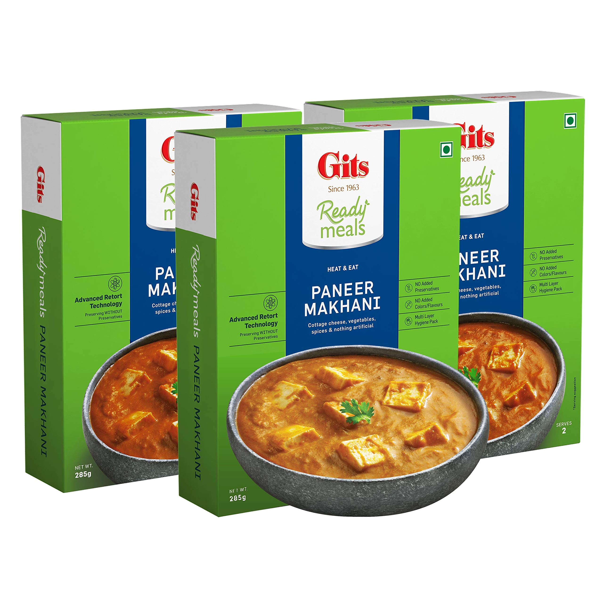 Gits Ready to Eat Paneer Makhani, 855g (Pack of 3 X 285g Each)