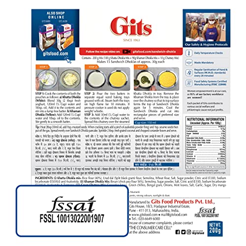 Gits Sandwich Dhokla Snack Mix, Makes 15 Per Pack,Pure Veg, Indian Snack Mix, 200g