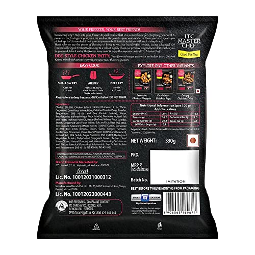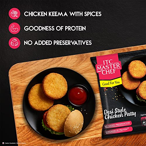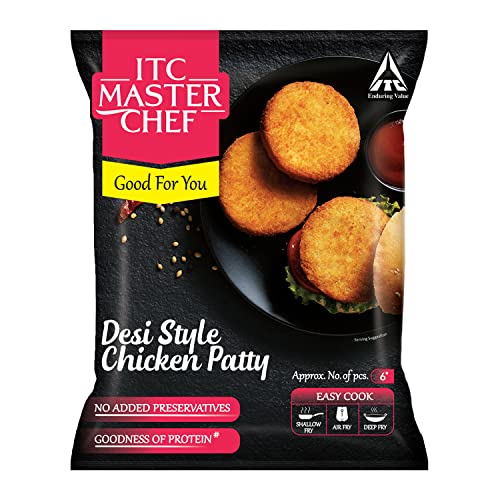 For those who love a spicy burger get ready for a patty that's specially made for parties. Presenting ITC Master Chef Desi Style Chicken Patty a spicy non-veg snack in a ready to cook pack for you to relish any time at home. What sets this snack apart is the fact that it is not some regular burger patty it is made with chicken keema spiced in Indian flavours. It only takes a few minutes to cook this frozen chicken patty and you are good to go. You can enjoy this snack as a cutlet along with your favourite dip. Relish a tasty chicken burger or put the patty inside a sandwich along with some veggies and sauces. Either way you are going to love this delicious snack. Each ITC Master Chef frozen food recipe is crafted keeping in mind the tastebuds and preferences of Indian customers. The dishes are frozen using IQF (Individually Quick Frozen) technology which keeps the taste intact till the time you open the pack for cooking. These frozen food products are made with the finest ingredients and come with the promise of the highest quality and taste. You can even pair these frozen snacks with different foods or try out some scrumptious recipes from our website.Next time you are in the mood to have a burger make one at home with this ready to cook pack of Desi Style Chicken Patty.