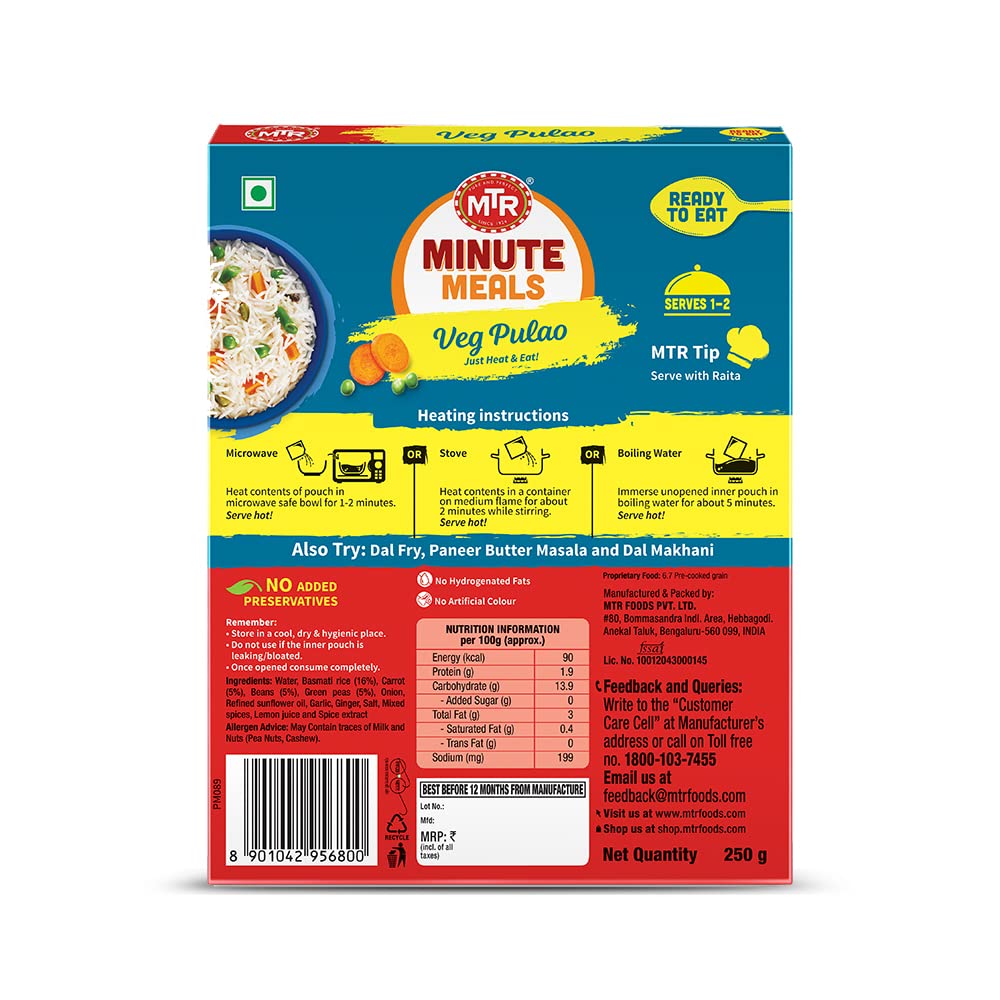 Get ready to grab the ready to eat vegetable pulao by MTR enjoy the utmost taste of the rice blended with spices and vegetables. Just heat and eat with pleasure. Get the packet of MTR ready to eat vegetable pulao and go drooling with the aroma it spreads all over.