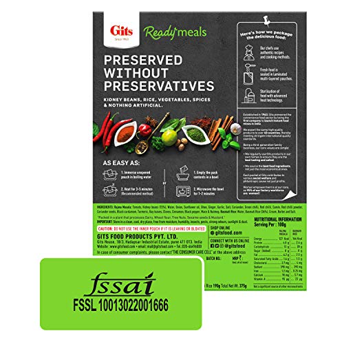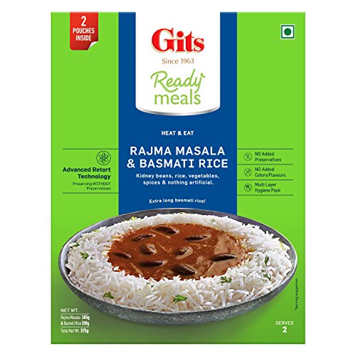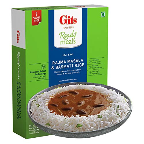 Gits Ready to Eat Basmati Rice + Rajma Masala Combo Indian Meal, Pure Veg, Heat and Eat, 1125g (Pack of 3 X 375g Each)