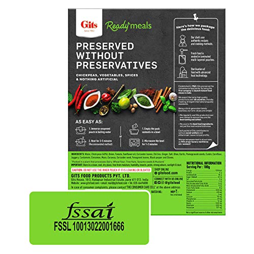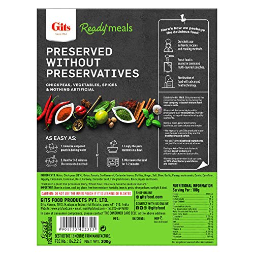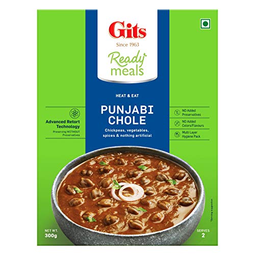 Gits Ready to Eat Punjabi Chhole, Pure Veg, Heat and Eat, Microwaveable 1200g (Pack of 4 X 300g Each)
