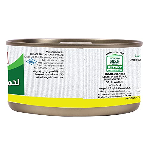 Wild caught skipjack tuna processed with Japanese technology meeting global standards. Tasty nibbles light meat tuna in sunflower oil enhances your flavour is a ready -to-eat all-time meal with natural ingredients and no added preservatives. Heart friendly product with rich source of omega 3 fatty acid proteins vitamins and minerals comes with HACCP and halal certification. Tasty nibbles light meat tuna in sunflower oil is ideal for all your varied tuna recipes including keto diet.