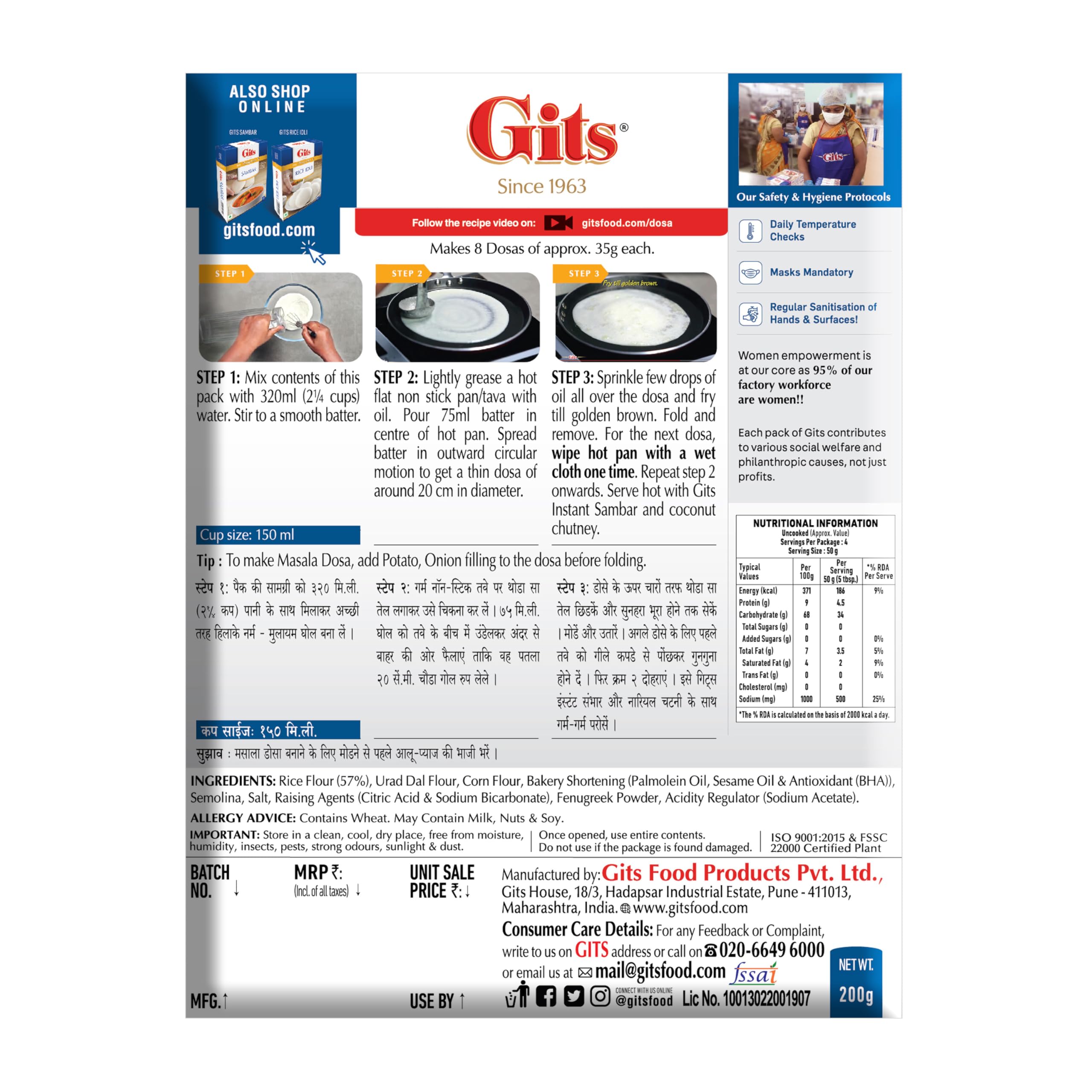 Gits Instant Rice Dosa Breakfast Mix Makes 8 per Pack Pure Veg South Indian Breakfast Mix 200g