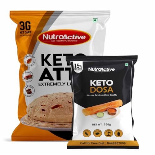 NutroActive Keto Atta Extremely Low Carb Flour - 1kg with NutroActive Keto Dosa Mix Gluten Free - 350 gm