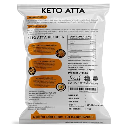 Gone are those days when Keto Diet used to be tough and almost impossible for pure vegetarians. With the launch of NutroActive Keto Flour Keto Diet is not less than a cake walk. Under Keto Diet a person needs to reduce his net carb intake to 30 gm per day so as to get good results. So even if you eat 10 chapatti or roti per day made from NutroActive Keto Atta it will only be 10 gm net carbs. Each chapatti or roti made with NutroActive Keto Atta would contains just one gm net carb. You will still be left with 20 gm cushion to accommodate other sources of carbs. NutroActive Keto Atta is an amazing option for people who are looking for some keto foods..