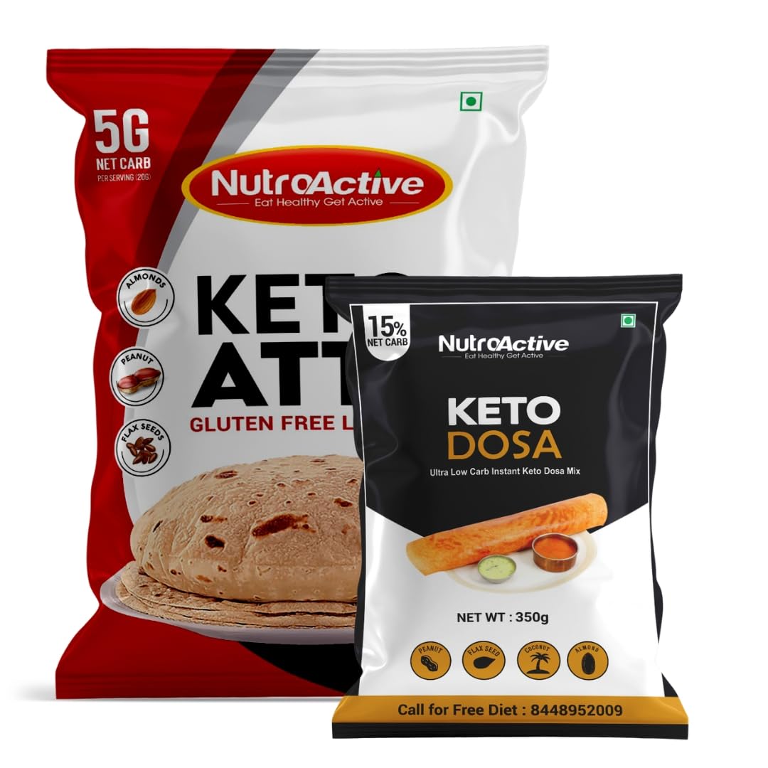 NutroActive Keto Atta Gluten Free 1kg with NutroActive Keto Dosa Mix Gluten Free - 350 gm