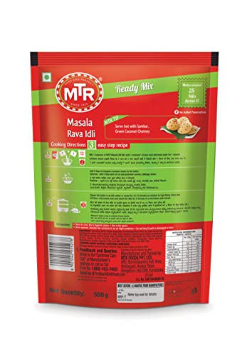 MTR Masala Rava Idli Mix - Breakfast Mix | Quick Breakfast | Instant Ready to Cook Mix | Ready-To-Make South Indian Breakfast | 500g