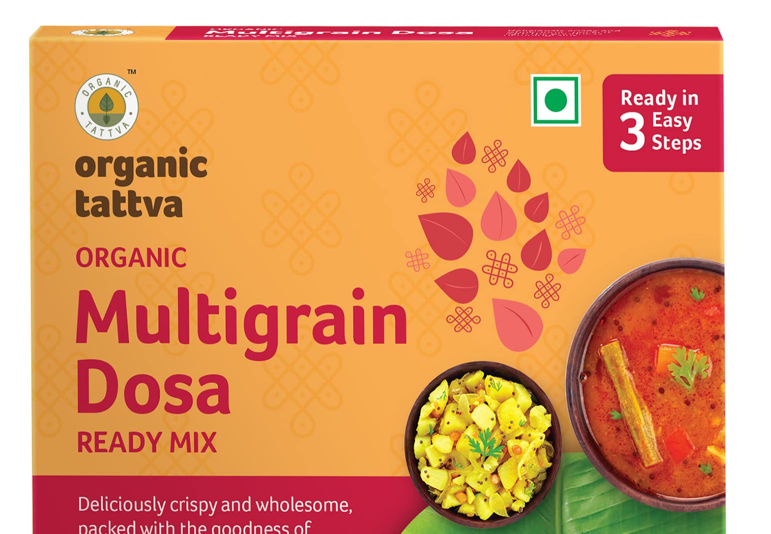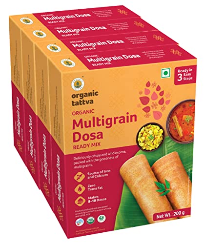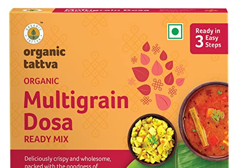 Making healthy and tastier Dosas just got easier! Organic Tattva's Organic Multigrain Dosa Mix helps you make a Delectable Meal in No Time! Moreover it is highly nutritious made with a blend of Corn Flour Jowar and Rice flour and has benefits of organic sunflower oil and natural Salt. This easy to make dosa mix is tasty healthy and perfect for you and your family. It is in an Instant and easy to cook format healthy breakfast. Prepared with the high-quality ingredients to help you add value to your food. Organic Tattva's Organic Multigrain Dosa mix is made from organic ingredients. This healthy dosa mix is based on homemade recipe and is 100% natural. Millets are gluten free fiber vitamins and minerals. Organic Multigrain Dosa mix is also a weight loss dosa mix because it will help to control your appetite. Devour it as a delightful family meal or as a snack to honor taste cravings within a matter of minutes. A convenient way of including Millets in your daily meals helping you stay fit & healthy.