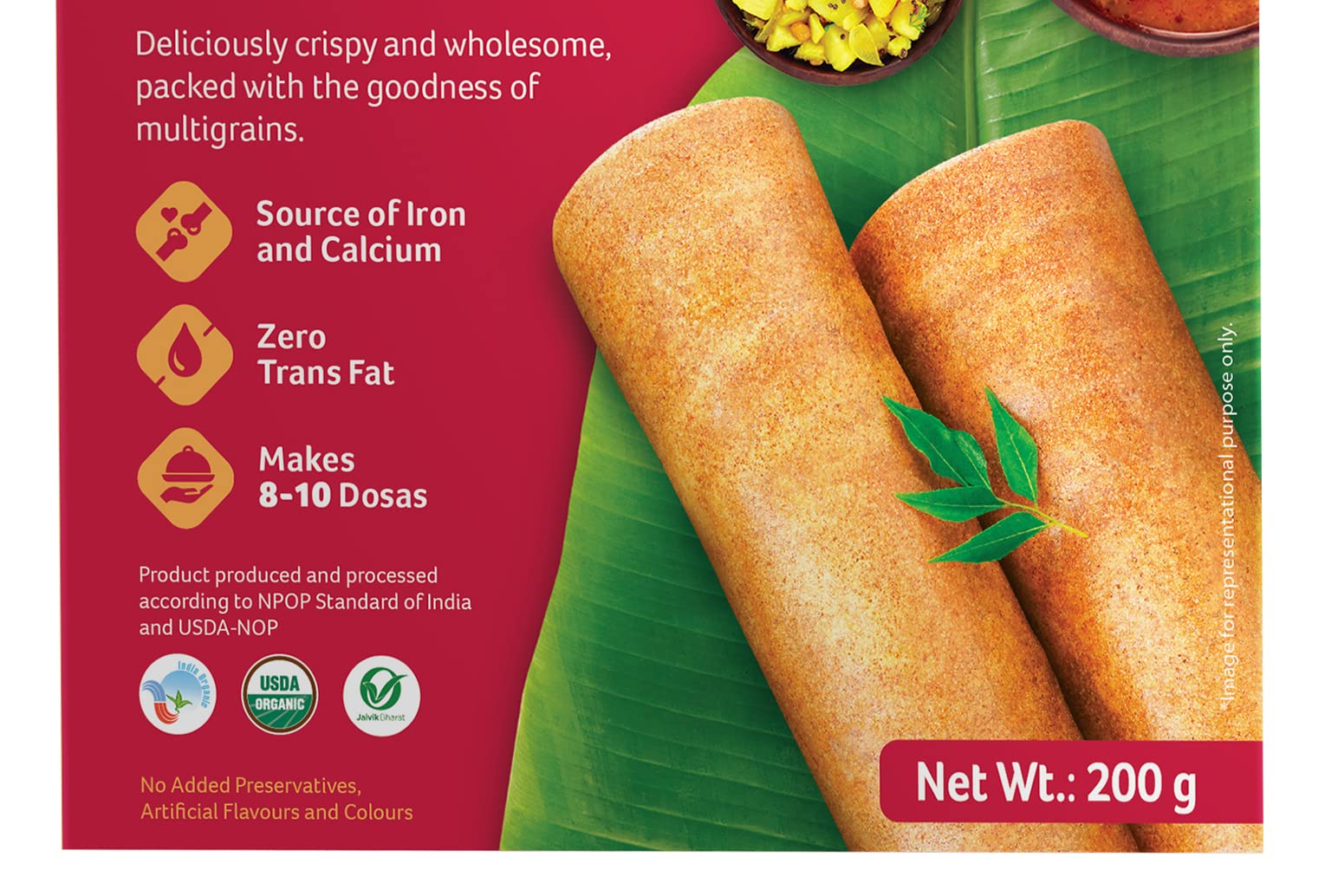 Organic Instant Breakfast & Snack Ready Mix Multigrain Dosa 200 Gram Box