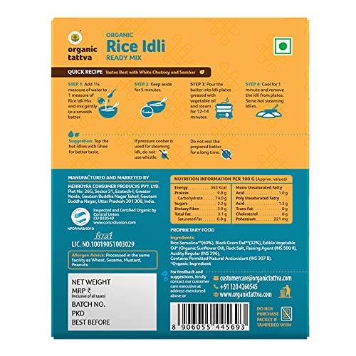 Organic Tattva Organic Rice Idli / Idly Ready Mix 200 Gram