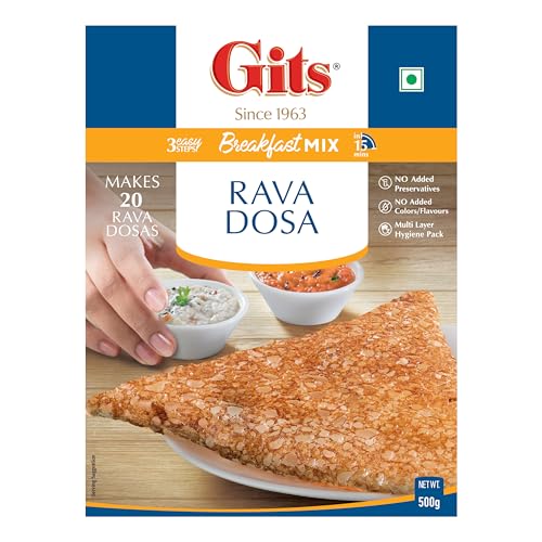 Gits Instant Rava Dosa Breakfast Mix, Makes 20 per Pack, Pure Veg, South Indian Recipe, 1500g (Pack of 3, 500g Each)