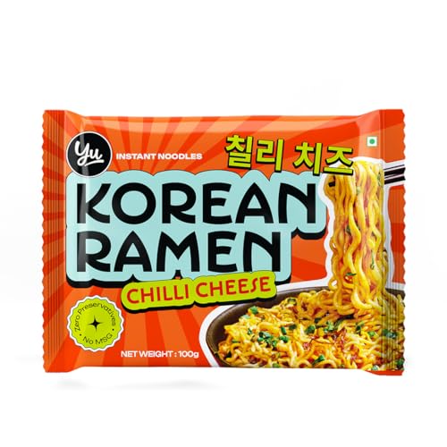 Chilli Cheese Korean Ramen - Zero Preservatives & No MSG - 100% Natural Ingredients & Veg - Instant Noodles Ready in 6 Mins - 100g - Yu