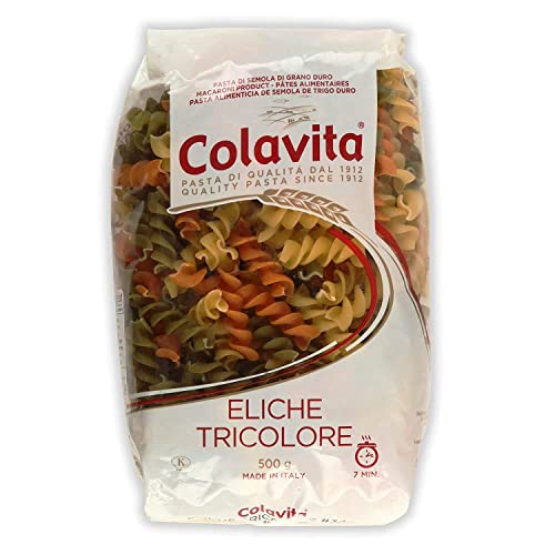 Colavita Eliche Tricolore Pasta (500g) | Durum Wheat Pasta | Imported From Italy | Pack of 2