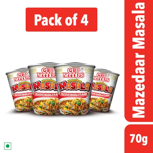 HomeGroceryInstantPasta & NoodlesNissin Cup Noodles Mazedaar Masala | Burst of Mazedaar Masala in Every Bite | Quick, Spicy, & Delicious Meal, 70 g (Pack of 4)