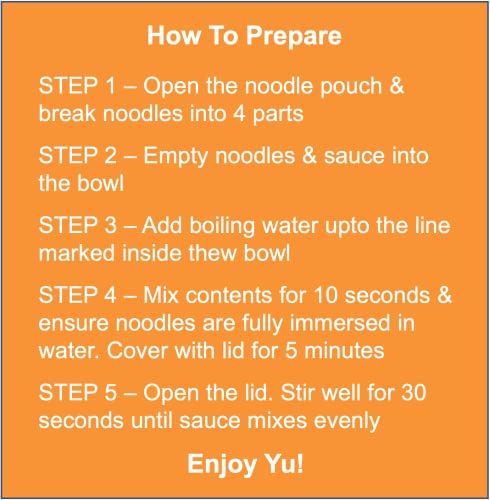 • Using zero preservatives or artificial ingredients our 100% natural ready to eat cup noodles require only 5 minutes to prepare by simply adding hot water.
