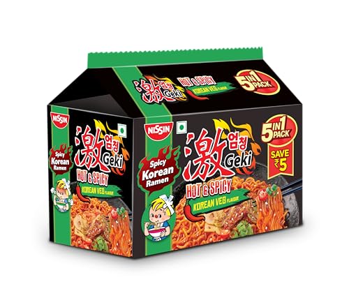 HomeGroceryInstantPasta & NoodlesNissin Geki Hot & Spicy Korean Ramen Instant Veg Noodles | Fiery Korean Flavors with Premium Ingredients for a Quick Delicious Meal | 400 gm (5 in 1 pack)