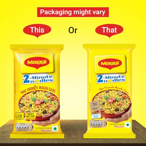 MAGGI 2-Minute Instant Masala Noodles is a favorite among people of all ages. MAGGI Masala instant noodles now come with the goodness of iron. Each portion (70g) of MAGGI masala noodles provides you with 15% of your daily iron requirement. It is just the perfect choice for those who need a quick and satisfying meal. MAGGI instant noodles are made with the choicest quality spices and ingredients to provide a great taste and experience. Usage instructions: Prepare a delicious meal in just 2 minutes with MAGGI â boil 1 cup of water and add the tastemaker along with the noodle cake broken into 4 pieces. Cook for 2 minutes in an open pan while you stir occasionally. Do not drain the remaining water. Garnish with your favorite veggies and serve hot. Storage instructions: Store in a cool dry and hygienic place to protect from insects pests and strong odors.