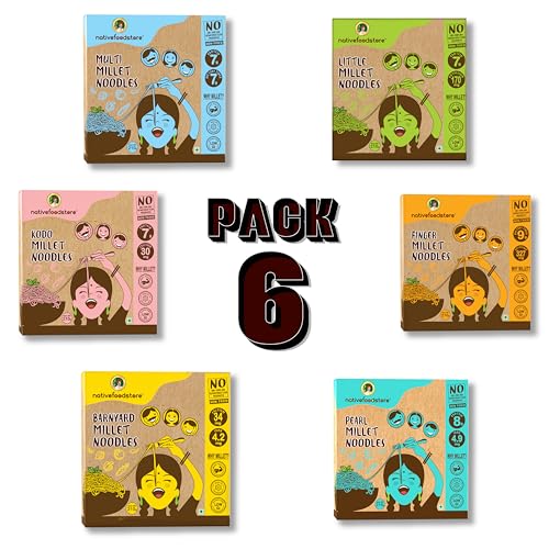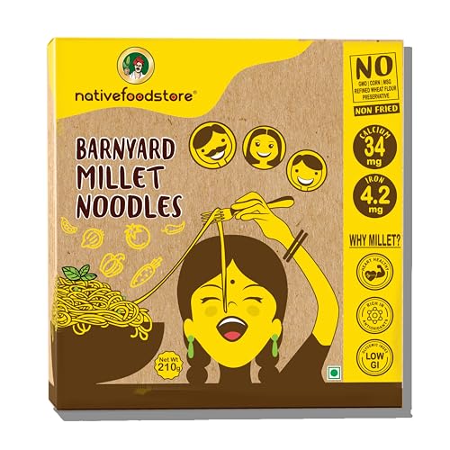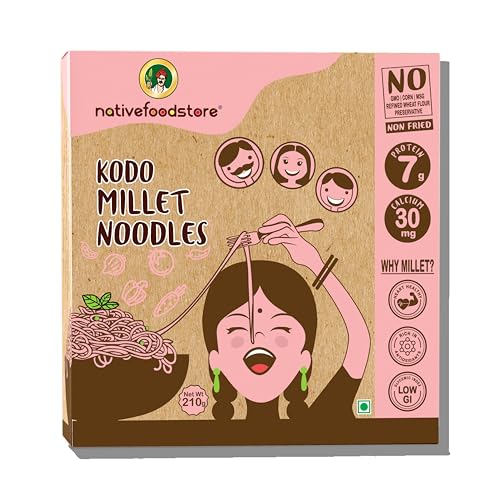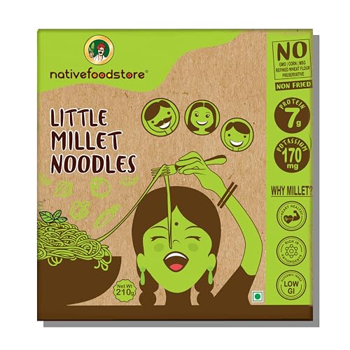 Nativefoodstore Millet Noodles - 210 Grams Multi Millet Noodles is healthy and tasty. Suitable for all age groups. Suitable for all age groups. Healthy Millet Noodles brings to you its highly nutritious and healthy alternative to commercially available Maida based noodles. Millets are an all age group nutrition food helping in absorption and fighting inflammations and further have anti-bacterial and anti-toxic properties. It's good for your health. It's available in 6 variants online. Millet Noodles are healthy and tasty It's free from Maida and chemicals. No added MSG. it's suitable for all age group people. Made with natural millet rich in nutritious multigrain No maida and preservative flavours. 100% made with organic grains and packed with the goodness of iron protein fibre and minerals like calcium and magnesium.Millet Noodles Comes with spice mix (not fried) masala which is perfect for quick meal or evening snack. Zero Junk Food rich in nutrition and natural grains.