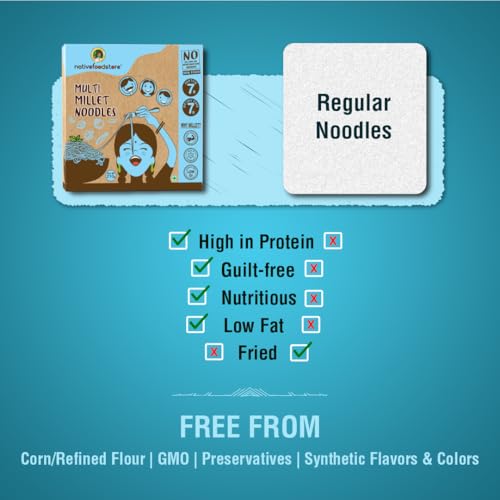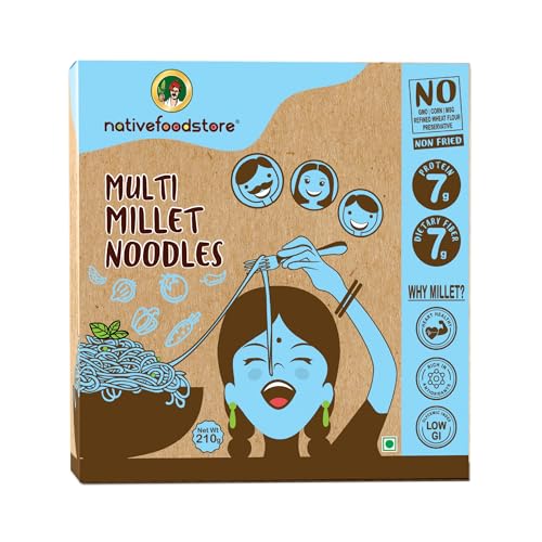 Nativefoodstore Millet Noodles - 210 Grams Multi Millet Noodles is healthy and tasty. Suitable for all age groups. Healthy Millet Noodles brings to you its highly nutritious and healthy alternative to commercially available Maida based noodles. Millets are an all age group nutrition food helping in absorption and fighting inflammations and further have anti-bacterial and anti-toxic properties. It's good for your health. It's available in 6 variants online. Millet Noodles are healthy and tasty It's free from Maida and chemicals. No added MSG. it's suitable for all age group people. Made with natural millet rich in nutritious multigrain No maida and preservative flavours. 100% made with organic grains and packed with the goodness of iron protein fibre and minerals like calcium and magnesium.Millet Noodles Comes with spice mix (not fried) masala which is perfect for quick meal or evening snack. Zero Junk Food rich in nutrition and natural grains.