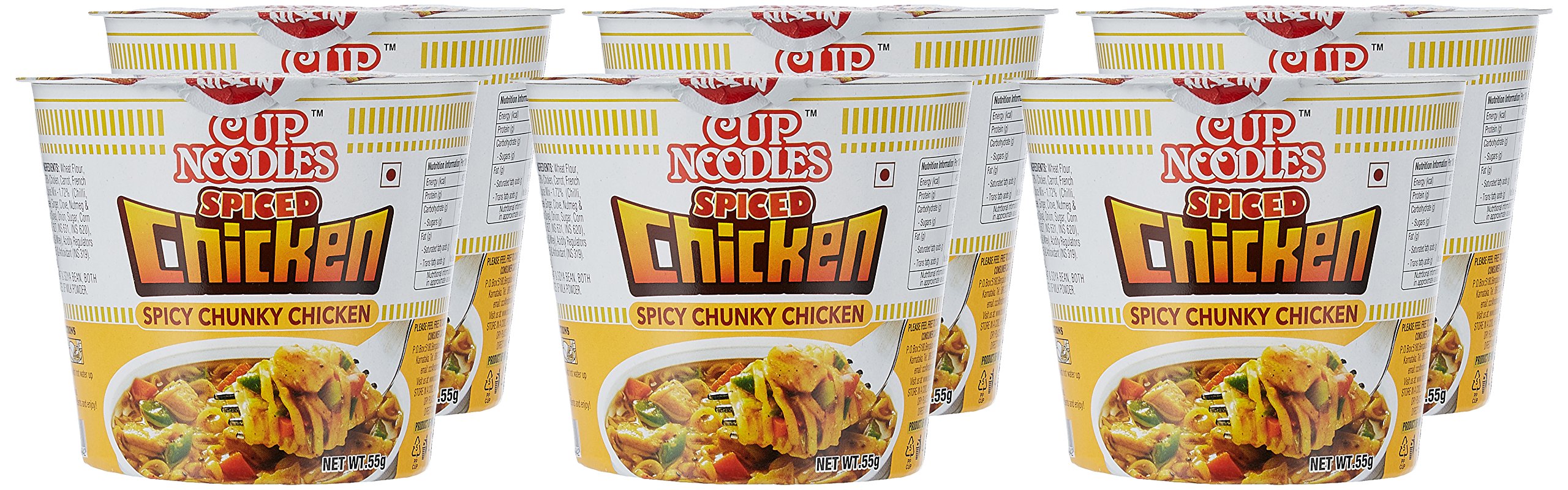 Nissin Cup Noodles, Spiced Chicken, 55g (Pack of 6)