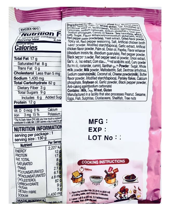 • High-Quality Ingredients Contains real chicken flavor, rich spices, and creamy carbonara sauce for a delightful combination. Suitable for all spice enthusiasts looking to enjoy authentic Korean rame