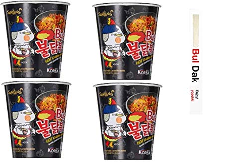 HomeGroceryInstantPasta & NoodlesSam Yang Black Stir Fried Hot Chicken Flavor Ramen Cup With Chopstick Instant Noodle Soup 70gm*4Pack (Imported) (Pack of 4)