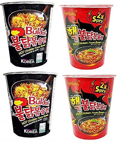 SAMYANG 2X Spicy & Stir Fried Buldak Hot Chicken Flavour Raman Cup Noodles70Mg*4 Pack (Pack of 4) (Imported)