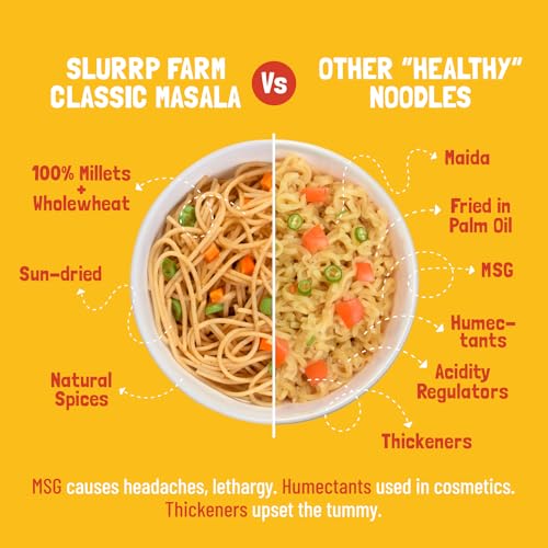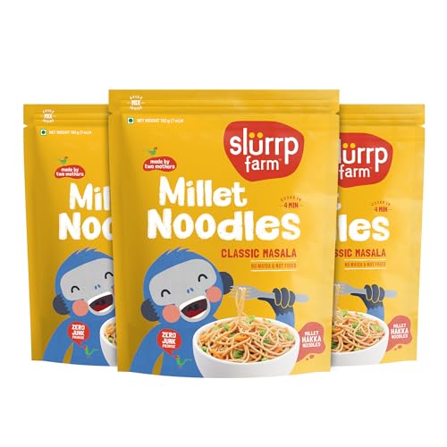 Slurrp Farm No Maida Millet Noodles | Not Fried, No MSG | Classic Masala Millet Noodles Pack of 3-192g Each