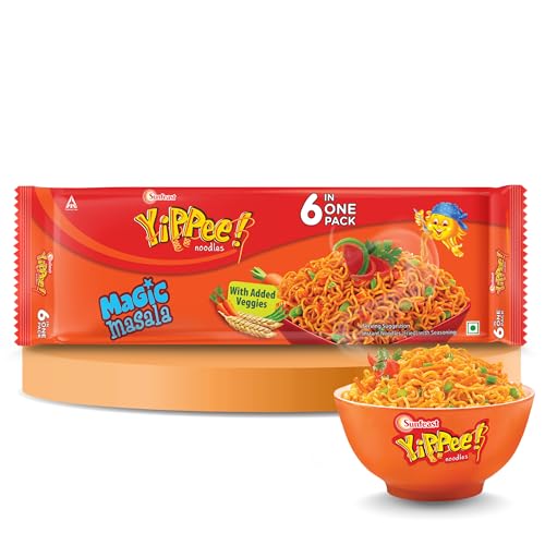 Looking for a mouth-watering slurpy bowl of instant noodles? Sunfeast YiPPee! Magic Masala Instant Noodles are sure to make for a quick tasty and wholesome meal for your kids. Made with the finest ingredients and the goodness of real vegetables YiPPee!'s delicious mix of Indian spices give it the much loved magical masala taste. The goodness of vegetables adds more texture and a healthy dash of colour to every bite of Noodles! Sunfeast YiPPee! comes packed in a unique round block which ensures you get long non-sticky and slurpy tasty instant noodles every time. Relish them as a tasty snack in the evening as a wholesome noodle meal which has the right nutrition and is a source of Calcium Vitamin C Iron Folic acid and Protein or for a midnight craving munch - perfect for when you want something quick and tasty.