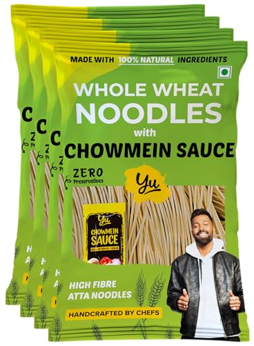 Whole Wheat Noodles - with Chowmein Sauce - Pack of 4 - Zero Maida - No Preservatives & 100% Natural Ingredients - Just Boil - Ready in 5 mins - 720g (4 Packs x 180g) - Yu