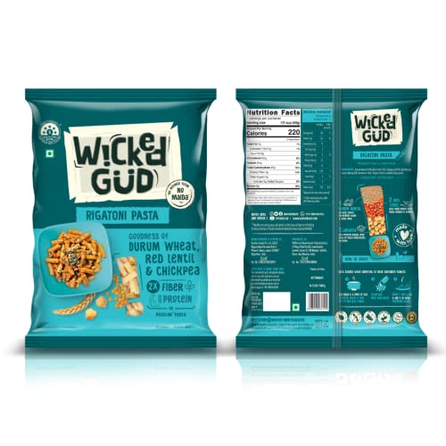 WickedGud 2X Fiber Rigatoni & Spaghetti Pasta Combo | No Maida | Durum Wheat Semolina | Brown Rice | Red Lentils | Healthy Diet Pasta - 400gm x 2
