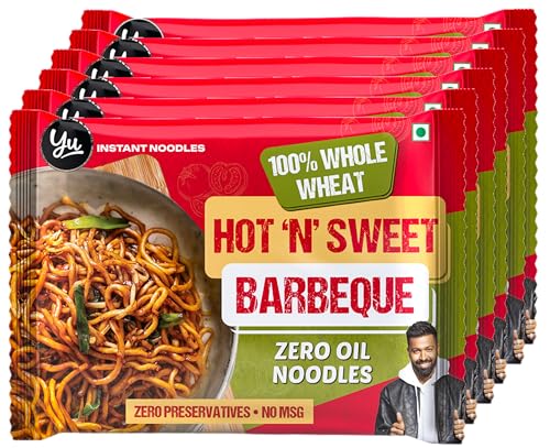 Yu Foodlabs 100% Whole Wheat Hot & Sweet Barbeque Instant Noodles - Zero Preservatives Zero Oil Zero & Zero MSG - Atta Noodles in 6 Mins - Veg - 420g (70g x Pack of 6) - Yu 420 gram Hot & Sweet