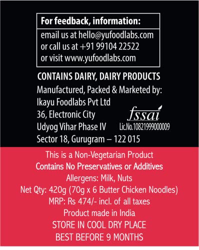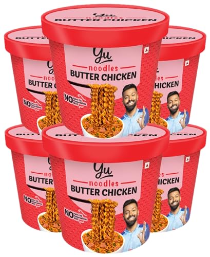 Yu Foodlabs Butter Chicken Cup Noodles - with Real Chicken Pieces - Pack of 6 - No Preservatives - Instant Noodles - 100% Natural & Non Veg - Ready to Eat Instant Food - 1350g